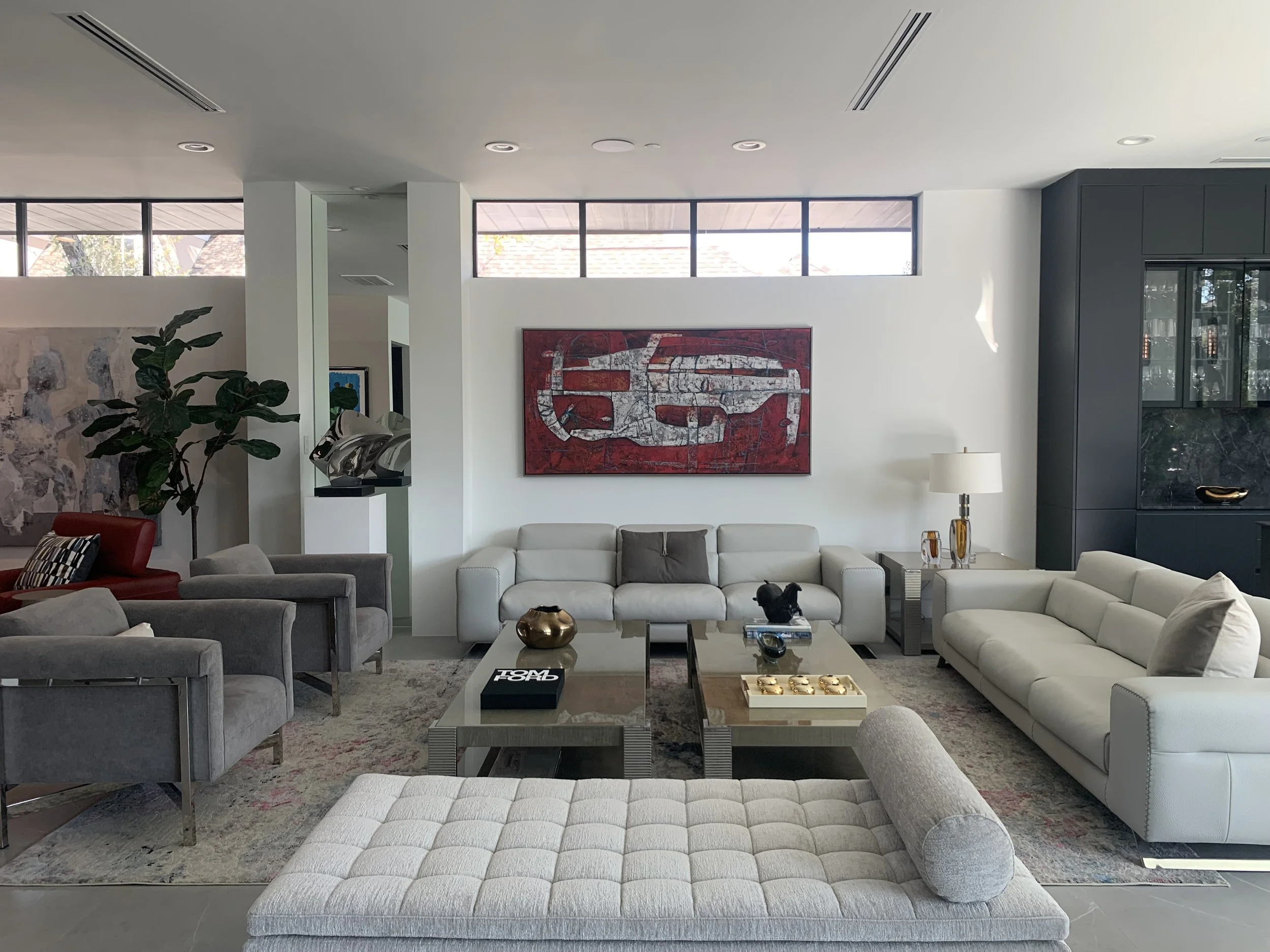 Situated in one of Bellaire’s most beautiful streets, this home is a modernist masterpiece. We had met the clients years ago during the construction of their first home and they wanted to bring us back to style and decorate the new residence. While forms and color palettes are muted and understated, the art investment of the home is a major player in the overall design scheme. All decorative pieces and styling respond to the art direction in this beautiful family home.